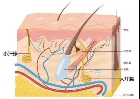 人体大概有330多万个汗腺,其中小汗腺约占90%,大汗腺约为10%。